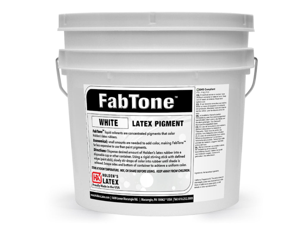 FabTone Latex Colorants are concentrated, latex color pigments that offer excellent dispersion and consistent color. A very small amount will color a proportionally large amount of liquid latex material. The more you add in proportion to the volume of liquid latex, the more dramatic the color effect. Recommended loading range is .3% to 10% of total system weight.
