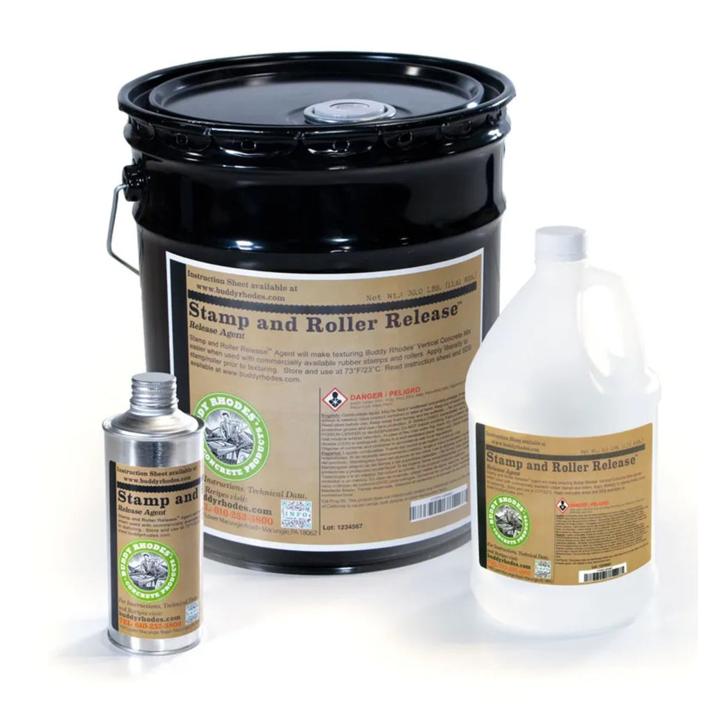 Buddy Rhodes Stamp and Roller Release is a bubble gum scented solvent release agent that aids in texturing Buddy Rhodes Vertical Mix by preventing the concrete sticking to texture stamps or rollers.