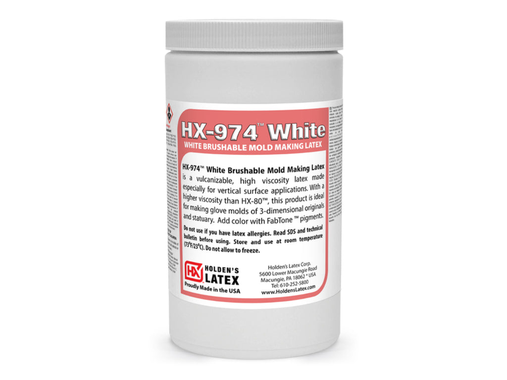 HX-974 White Brushable Mold Making Latex is a newly developed vulcanizable, high viscosity latex made especially for vertical surface applications. With a higher viscosity than HX-80, this product is ideal for making glove molds of 3-dimensional originals such as statuary. Molds are suitable for casting plaster, concrete and wax.