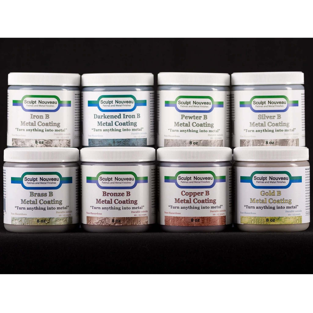 Type B Metal Coatings are ground metal suspended in a non-toxic water based acrylic binder. They may be applied to both metal and non-metal surfaces such as glass, wood, ceramics, concrete, foam, and resin. Type B Metal Coatings are available in bronze, brass, copper, iron, pewter and silver coatings.