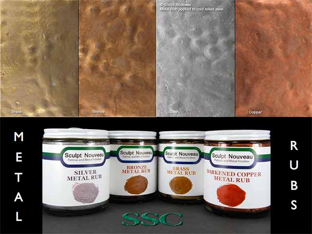 All of the patinas except Traditional Patinas may be applied to these rubs. The rubs are available in bronze, brass, copper, silver and gold colors.