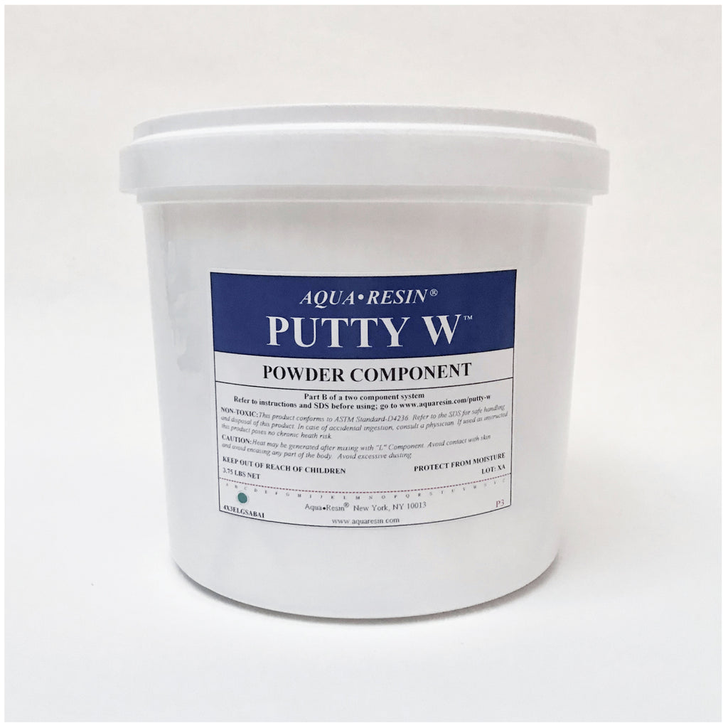 Putty W is a two component, non-toxic, water-based filler putty material comprised of Aqua-Resin Lxf Liquid and Putty W Powder. it adheres to wood, metal, rigid foam and most plastics. It is compatible with chopped fiberglass or fiberglass mat. It is highly flame resistant. Useful as a wood filler and a sculpting material as well as a replacement for polyester filler putties. Paired with Aqua-Resin Lxf Liquid component, it can be mixed to the ideal consistency for your project, and it is easy to cut and shape while curing. It can be stained, painted and internally colored. It is ideal for sculpting, model making and even for producing heavily impastoed paintings. For long-term outdoor applications, an exterior sealer or good quality exterior paint is recommended.