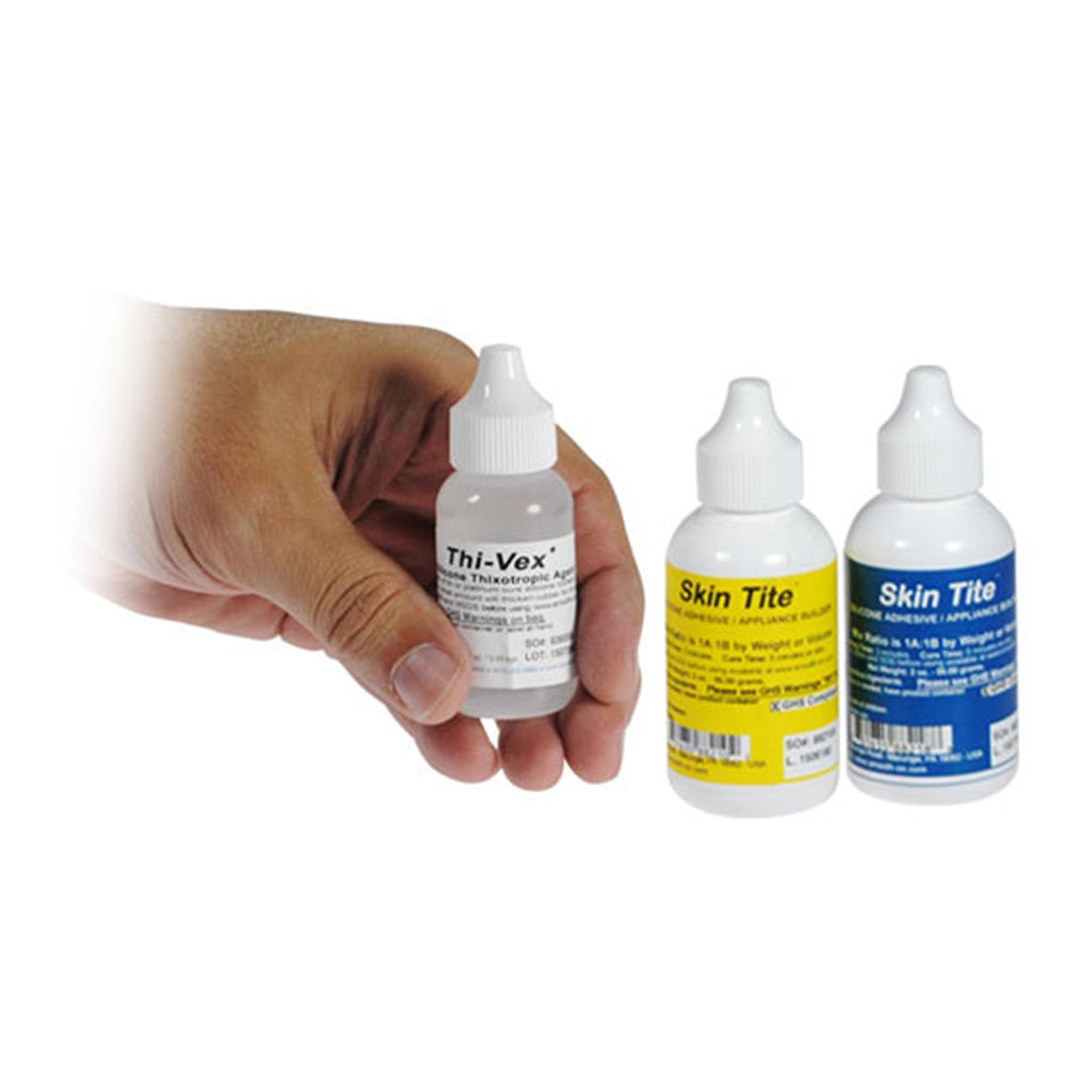 Skin Tite is a skin safe silicone used to create fast wounds, scars and skin effect appliances directly to the skin. Cured material is certified by an independent laboratory. It can be sculpted "on the fly", offers maximum control and stays precisely where you put it. Skin Tite will adhere to the skin and perfectly conforms to all contours. Cured rubber is strong and will bend/flex with body movement. Wounds and appliances will not come off until you remove them.
